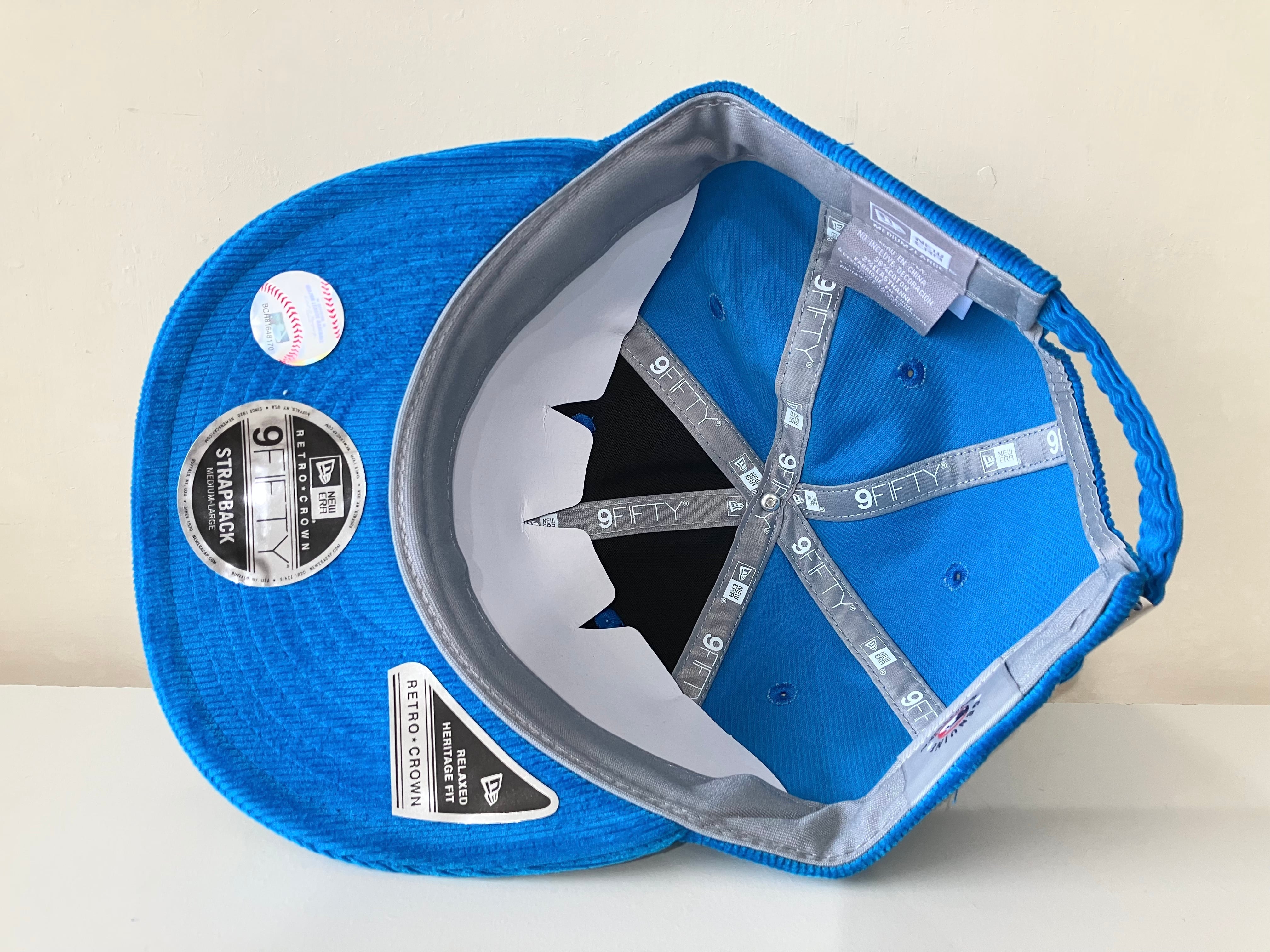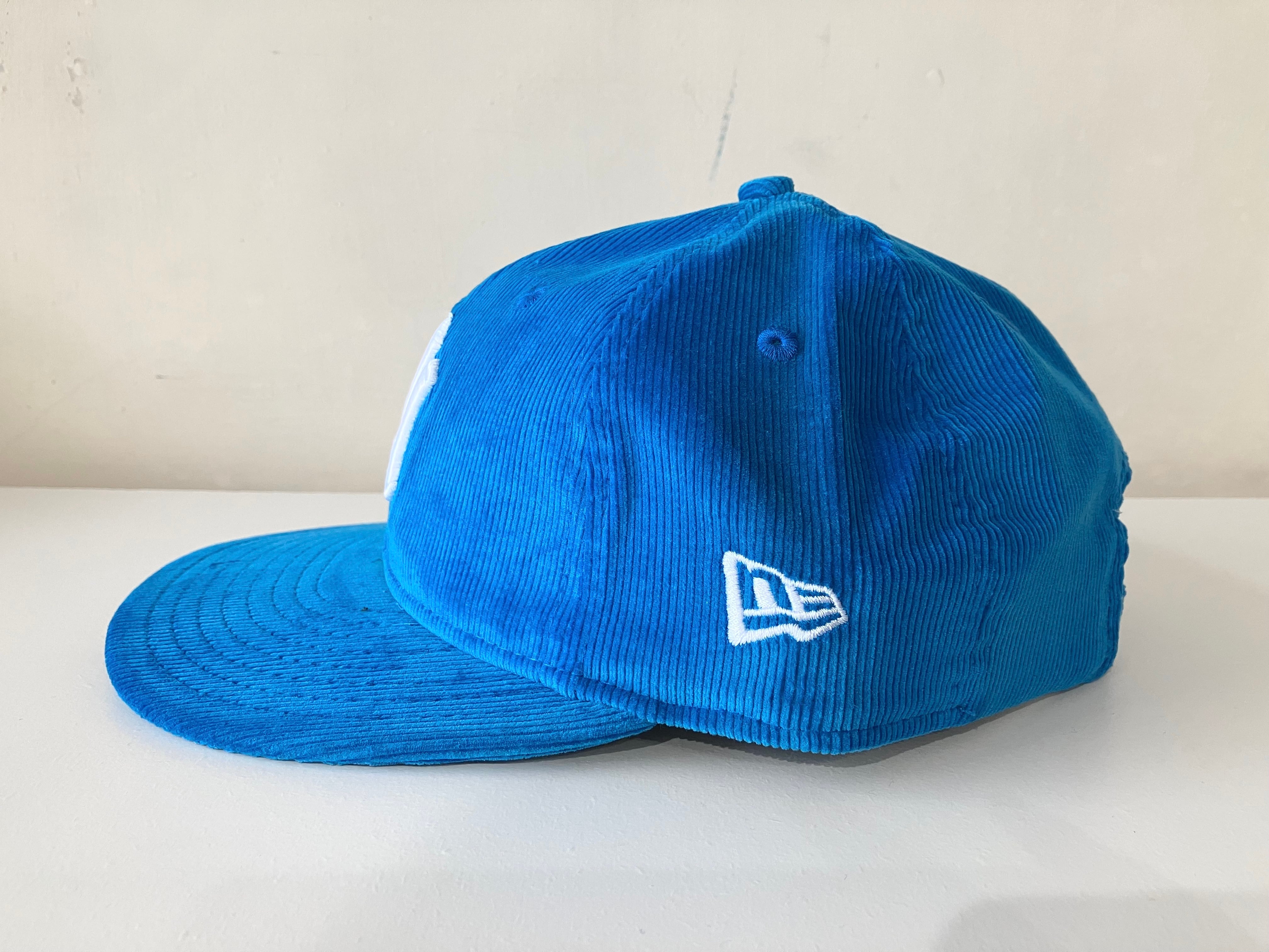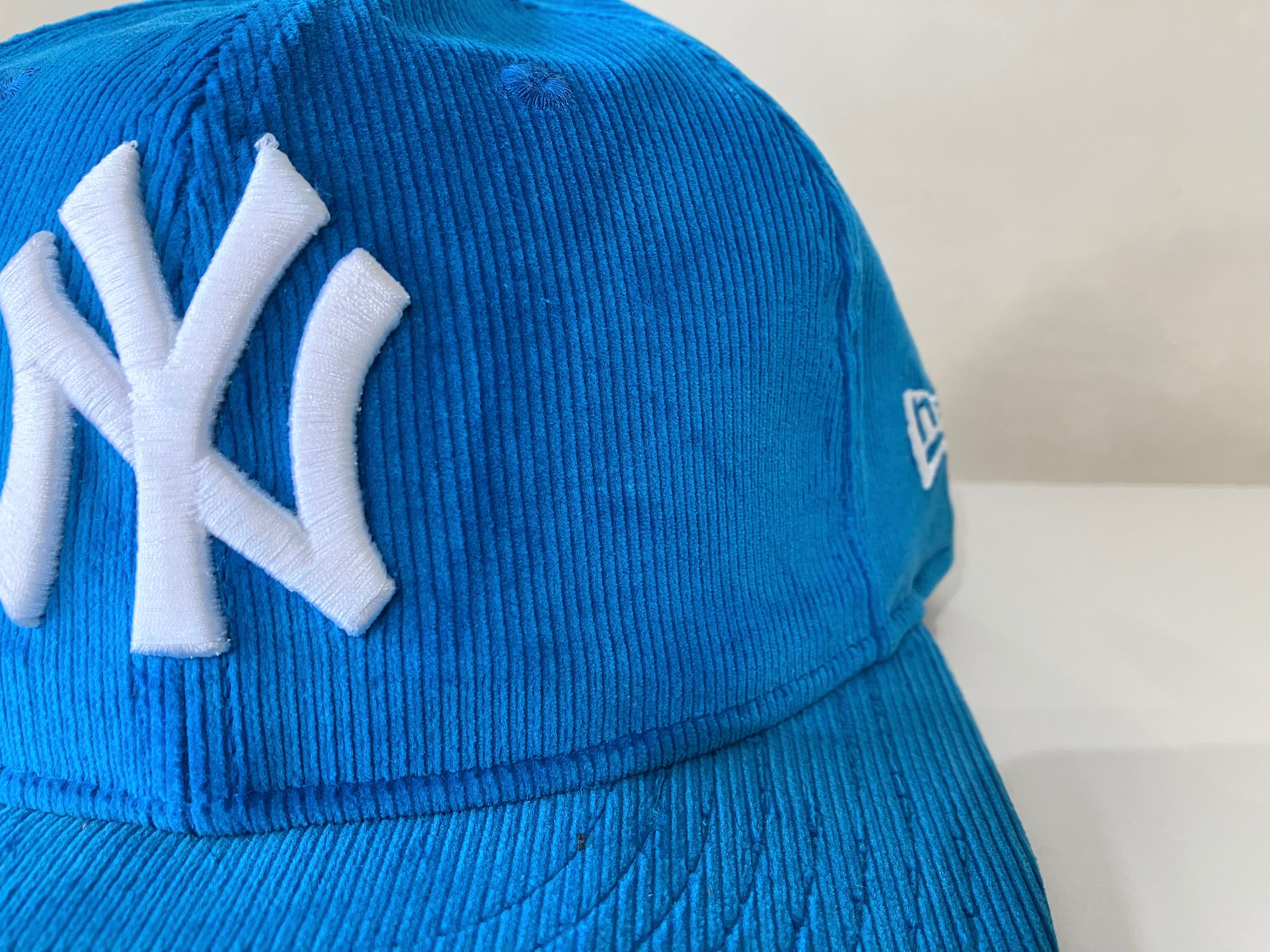 誰のために作ったのか?ターコイズのコーデュロイ素材にNYロゴ、良い感じですよ!!!